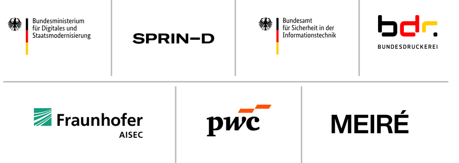 - Fraunhofer AISEC: Unterstützung in den Bereichen technische Analyse, Sicherheitsarchitektur und Wallet-Design sowie User Experience (Nutzendenerfahrung) und User Interface (Benutzendenoberfläche)